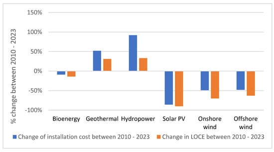 Increasing sustainability and reducing dependence on fossil fuels has a natural impact on the entire economic system and society; however, success in implementing green and circular economy principles depends on various factors [47,56,57,58]. However, this transformation will not happen without increasing the use of RES energy, for whose generation in a distributed system prosumers are beneficial [44,45,59]. According to Ritchie et al. [60], on average worldwide, the share of renewable resources in primary energy consumption (transport, electricity, heat) was 14.56% (in the EU, it was almost 22%; in OECD countries, 16.5%; in non-OECD countries, 13.4%). On average worldwide, about 47% of this energy comes from hydropower and almost 26% from wind, just over 18% is solar energy, and only 8.7% is from other renewable resources, which include bioenergy arising from biomass (excluding traditional biomass) and also geothermal, wave, and tidal energy [60].