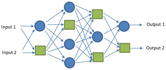 To achieve the desired mapping between inputs and outputs, the network parameters are adjusted during the training process using the provided training data and a defined learning algorithm. The typical architecture of ANFIS with two inputs and two outputs is presented in Figure 2 [44].