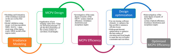 This paper is organized as follows: In Section 2, the methods and specifications are outlined, including the targeted cars and site of use, as well as the determination of solar irradiance. Section 3 provides a detailed description of the proposed MCPV system. Section 4 discusses the conducted simulation and the achieved results. Finally, Section 5 presents the conclusions drawn from the study.