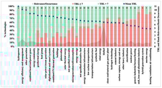 The information regarding the innovative technologies considered in each domain was obtained from a database linked to the IEA’s Energy Technology Perspectives 2020 [38]. This comprehensive database encompasses 368 distinct technology designs and components spanning the entire energy system, all contributing to the objective of achieving net-zero emissions. Each technology entry in the database includes details on its maturity level (TRL value), development and deployment plans, cost and performance improvement targets, and key players in the field.