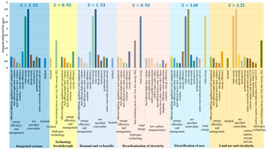 Figure 14 illustrates the potential of each pathway to reduce net CO2 emissions by 2030. The “Electrification of uses” stands out with the highest average potential for CO2 emissions reduction, followed closely by the “Integrated systems” and “Demand reduction” approaches.” Conversely, the “Technology breakthrough” and “Decarbonisation of electricity” pathways show the lowest potential for CO2 mitigation.
