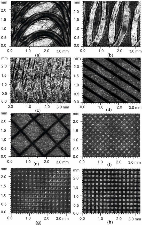 - Among all enhanced surfaces tested, the highest values of surface texture dimensions (maximum depth and maximum height) were observed for the novel laser texture named #LS3 (45-degree dense grid pattern) and one of the vibration-assisted laser textures tested in previous investigations by the authors (#VALS1);