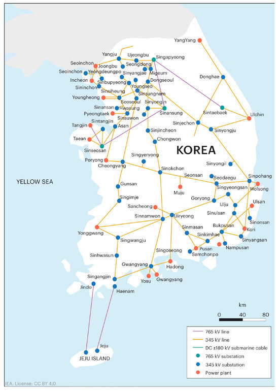 Power grid system of South Korea (cited from International Energy Agency, available at https://www.iea.org/articles/korea-electricity-security-policy (accessed on 28 April 2024).