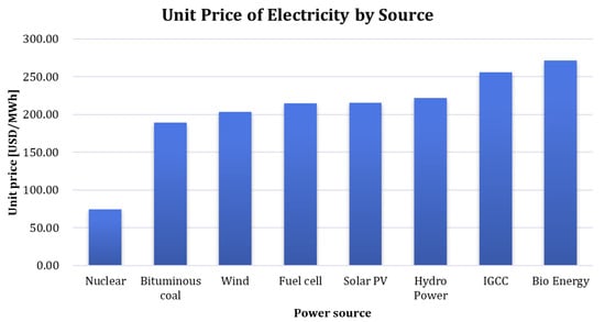 Comparison of unit price of electricity by source in South Korea, 2023 [16].