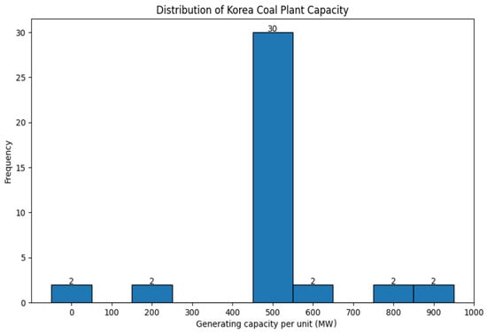 This research utilized publicly accessible data from the Korea Electricity Exchange [20], Electric Power Statistics Information System [21], and Repowerscore [22]. Ninety-one thermal and combined heat and power (CHP) plants with capacities of 30 MWe or greater located on the mainland of South Korea are examined. The analysis assessed the number and capacities of these plants on an individual unit basis.