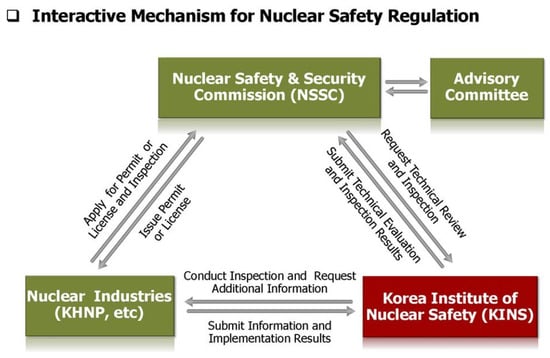 Due to the risk of severe accidents in nuclear power plants, a strict regulatory framework governs the entire life cycle of nuclear plant operations, including licensing, construction, operation, and decommissioning. In South Korea, nuclear safety regulations are managed by two major regulatory bodies: Nuclear Safety and Security Commission (NSSC) and Korea Institute of Nuclear Safety (KINS) (Figure 23).