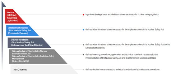 - Nuclear Safety and Security Commission Legal Framework. Available online: https://www.nssc.go.kr/en/cms/FR_CON/index.do?MENU_ID=440 (accessed on 2 April 2024).