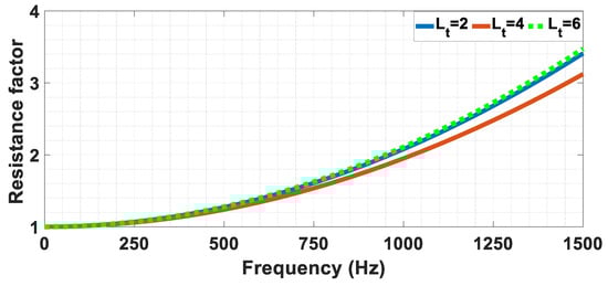 Resistance factor . for various values of , and , keeping the same conductor cross area.
