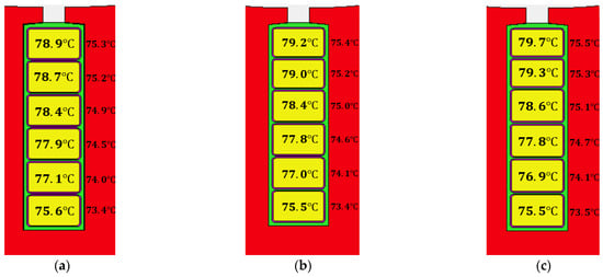 The temperature decreases with asymmetric winding at 1000 Hz: (a) ; (b) ; (c) .