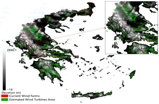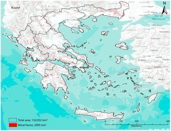 Currently installed wind farms’ area in Greece.