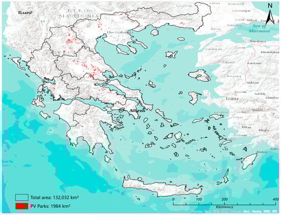 Areas of the currently installed PV parks in Greece.