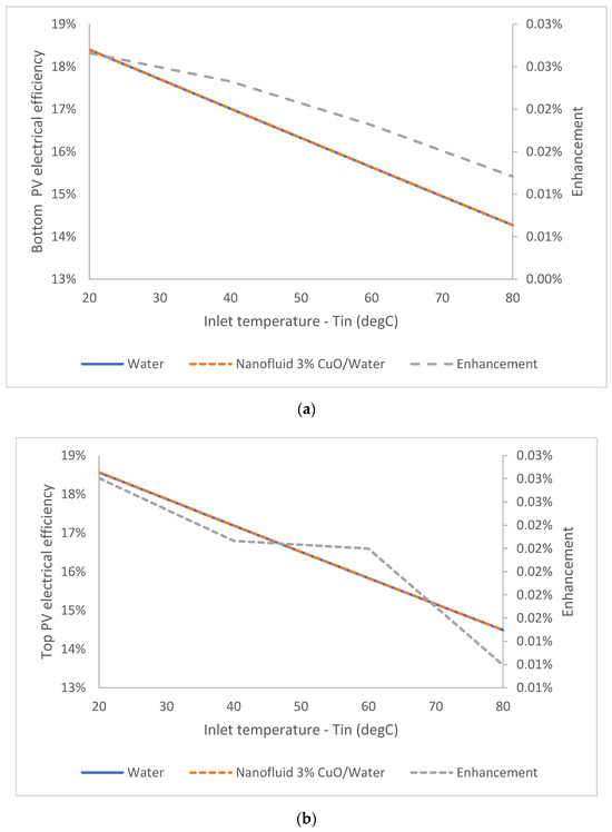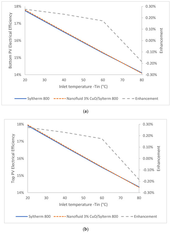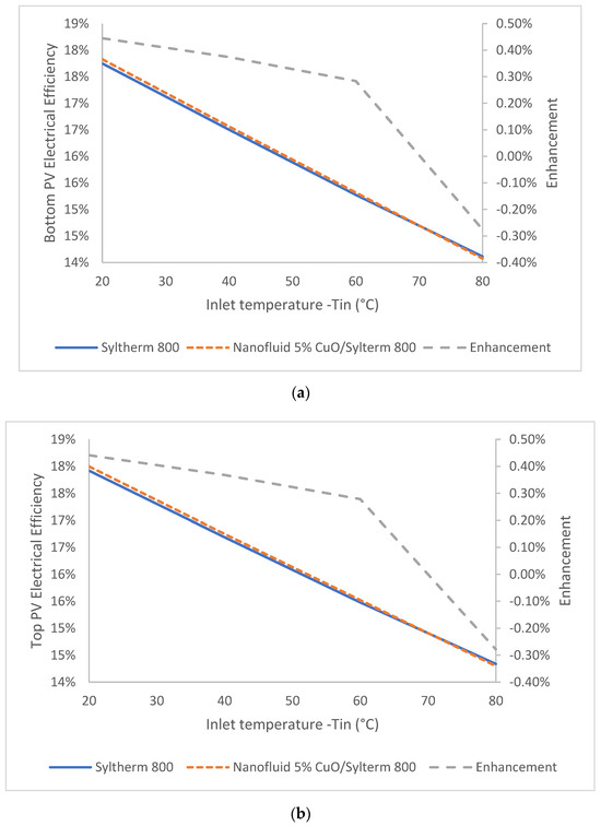 - The thermal enhancement was observed to be up to 25.68% at high temperatures and up to 1.32% at low and medium temperatures, while the maximum electrical efficiency increase was 0.44%