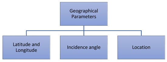 Numerous studies have shown that the effectiveness of PV systems is associated with geographical disparities in both urban and rural areas. Variations in geographical location directly impact solar radiation strength and cause changes in wind velocity, moisture levels, dust, and the accumulation of air pollutants on PV panels. These factors lead to reduced productivity and performance fluctuations in PV systems [19,20].