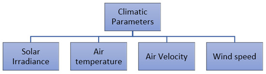 Climatic parameters are also known as external parameters, which are one of the most important parametric branches of the hybrid PVT system. The main parameters of this branch are solar irradiance, air temperature, air velocity, and wind speed are classified in the above Figure 16. Among these parameters, solar irradiance has the most significant impact on the photovoltaic thermal system’s overall output.