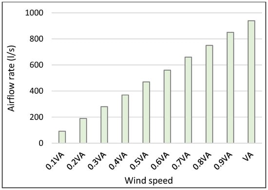 The values of airflow rate for the optimal angle (30°) and under different wind speeds.