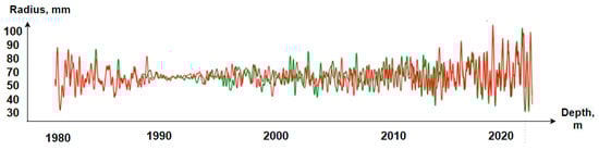 Graphs of the well walls of the reference (green) and those constructed by the software presented in this article (red).