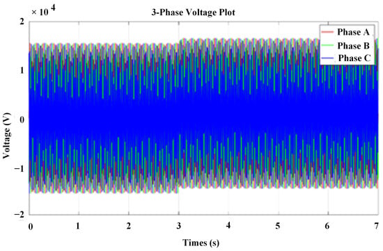 The simulation results, visually represented in Figure 3, provide a clear depiction of the alterations in voltage levels induced by the proposed poisoning attack. This graphical representation highlights the significant changes in the VPP’s voltage characteristics post-attack, illustrating the attack’s disruptive influence on the system. Furthermore, similar observations were made for the three-phase voltage, as evidenced in Figure 4. In this figure, the attack is initiated at t = 3 s, leading to a voltage deviation. The attack persists continuously after the third second. These findings serve as crucial evidence of the attack’s implications on the VPP’s overall performance and underscore the importance of understanding and mitigating such cybersecurity threats in power systems. Through these simulations, we gain valuable insights into the vulnerabilities of the VPP framework and emphasize the need for robust security measures to ensure the resilience and stability of power systems in the face of potential attacks.