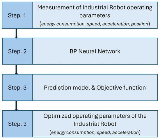 In [], an analysis was presented on the characteristics and modeling of energy consumption by industrial robots (Figure 7). The modeling of energy consumption considered parameters such as inertia and friction using simulated power data. The analysis examined the relationship between the robot’s speed and energy consumption.