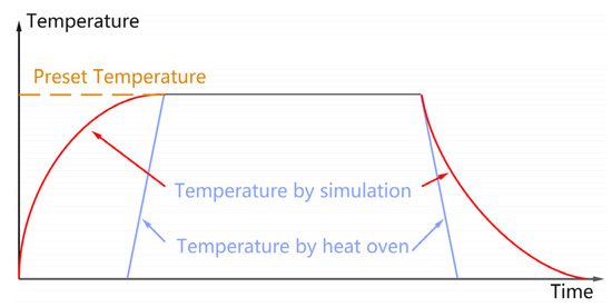 Diagram of temperature evolution process via heater and cable operation simulation.