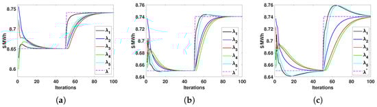 Incremental cost of the five-agent system for different network topologies. (a) Topology 1; (b) Topology 2; (c) Topology 3.
