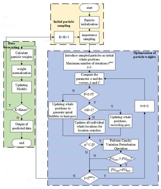 In summary, the flow of the WOA-PF algorithm is shown in Figure 1.