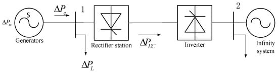 When the ULFO occurs, there is no relative oscillation between the units. Therefore, the synchronization network can be equated to a single system and the frequency changes of each node in the system at the same time are the same. A single-machine infinite-bus system is employed to investigate the mechanism of ULFO generation, which is shown in Figure 1.