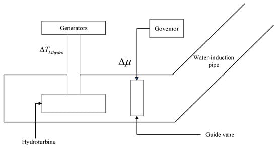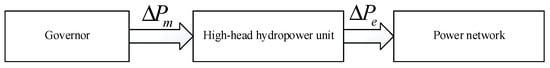Figure 4 shows the energy transfer structure between the hydraulic turbine and the power grid. is the change in the mechanical power of the governor; is the change in output power of the hydraulic turbine.