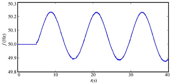 The load disturbance is simulated using a loss of 100 MW load power in area 1 at . The frequency of area 1 is shown in Figure 8.