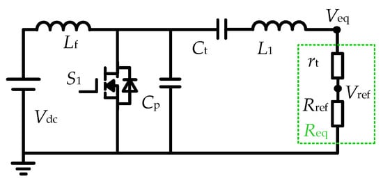 The equivalent load, including the Rref and rt, is illustrated in Figure 6. The optimal values about the Cp and Ct at ω0 can be calculated by Equation (9) when the Class-E PA operates at its optimally tuned point. According to [36], the voltage of the equivalent load Req is expressed by Equation (10).