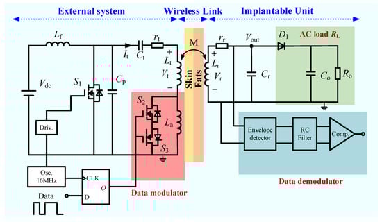 - Lee, B.; Kiani, M.; Ghovanloo, M. A triple-loop inductive power transmission system for biomedical applications. IEEE Trans. Biomed. Circuits Syst. 2016, 10, 138–148. [Google Scholar] [CrossRef] [PubMed]