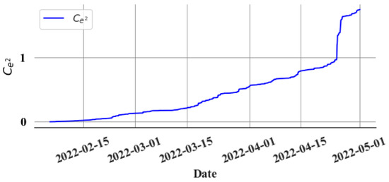 As discussed in the previous section, the bi-weekly rise () of the cumulative sum is calculated from the graph, and the data is resampled on a daily basis by capturing the last value of each day. This graph clearly shows how many errors accumulated during that period. The focus is solely on the gradual, consistent errors (). Therefore, the rapid shifts in the cumulative sum graph are disregarded, with attention paid only to the gradual alterations. This helps to make the algorithm more robust against random noise. Figure 12 depicts the final bi-weekly difference in the cumulative sum graph, excluding rapid increments.