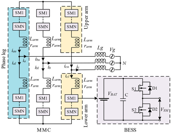 Schematic diagram of MMC-BESS with half-bridge submodules.