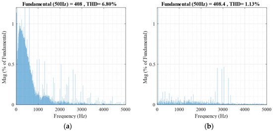 Harmonic distortion analysis of the output current: (a) not balanced; (b) balanced.