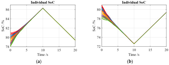 SoC profiles: (a) from the charging mode to the discharging mode; (b) from the discharging mode to the charging mode.
