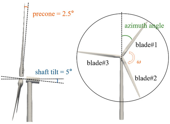 Following the above statement, it is worth investigating the changes in aerodynamic characteristics and wake influenced by complex platform motion based on the blade-resolved CFD method. In this study, a wind turbine simulation model was set up based on the CFD method to study the influences of different platform movements on the wind turbine’s aerodynamic characteristics and analyze the velocity distribution in the near wake and the changes in the vortices in order to analyze the unsteady effects caused by the platform movements.