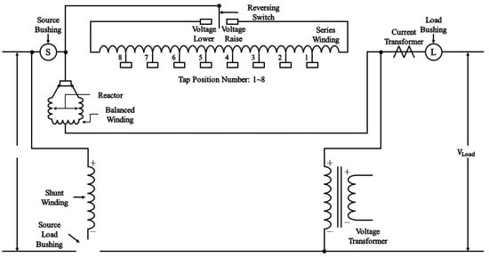 An ISVR uses the series transformer structure of IEC 60076-21, which has a tap on the load-side transformer and is considered optimal in terms of power rating and insulation requirements. The series transformer () for voltage compensation is located on the source side. A 4-winding parallel transformer () to determine the compensation voltage is connected to the load side.