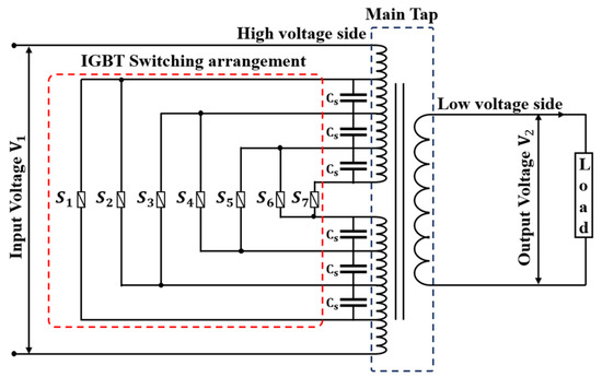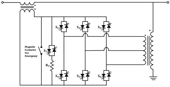19]. On the other hand, IGBT has not been used as switch elements in an SVR due to low blocking voltage. Nevertheless, IGBT is replacing conventional thyristors because it operates at high speeds with self-commutation and is useful for continuous voltage regulation [
