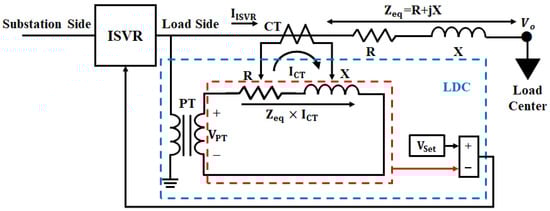 The LDC method is used as a voltage control method. This method is applied to the SVR for proper voltage control of long distribution lines. It keeps the virtual load center point at a constant voltage to minimize voltage error regarding the voltage on the entire distribution line under load conditions from light load to peak load [