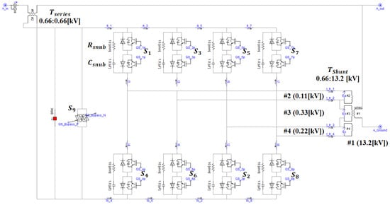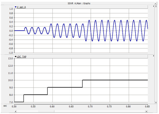 Figure 23. Based on the single-line phase nominal voltage of 13.2 kV in the target distribution system, 13 taps are operated in stages. The compensation voltage per tap is the same as the ISVR topology in