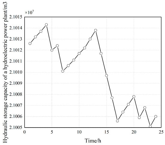 In the formula, represents the capacity of the reservoir of hydropower station ; represents the inlet flow of hydropower station ; and respectively, represent the upper and lower limits of the capacity of the reservoir of hydropower station ; and respectively, represent the capacity of the reservoir of hydropower station at the initial and final moments; and , respectively, represent the set values of the capacity of the reservoir of hydropower station at the initial and final moments.