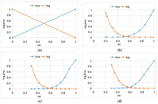 Typical facies permeability curves of different reservoirs ((a) fracture system, (b) sandstone system, (c) shaly sand system, (d) coal reservoir).