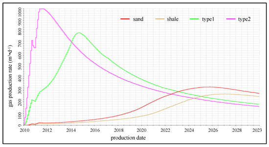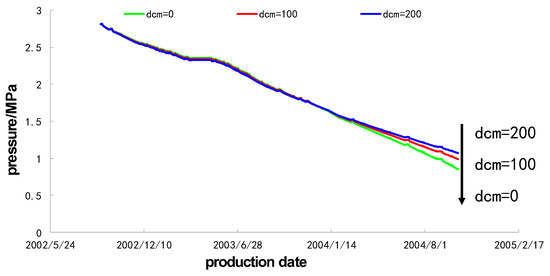 Production data of actual wells were obtained from examples in FEKETE software (version: 2016 V3) (FEKETE > coalbed methane > dry coal), and the basic parameters are shown in Table 2. The matrix shrinkage model adopted was the Seidle and Huitt model, and its parameter values were dcm = 0, 100, 200, where dcm = 0 indicated that the matrix had no shrinkage effect.