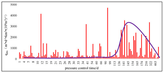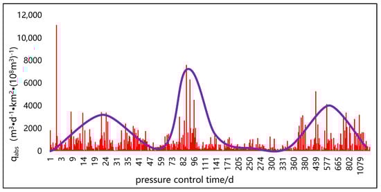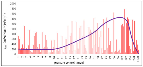 Through the relationship between pressure control time and peak gas production per unit abundance of different coalbed methane blocks, it can be seen that different blocks have higher peak gas production and higher gas well productivity at one or several pressure control times (from Figure 6, Figure 7 and Figure 8).