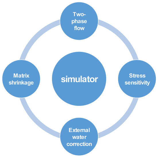 Coalbed methane is methane gas adsorbed in coal seams. Coalbed methane is a dangerous gas that can easily cause explosions in the process of coal mine development. Around the world, many people lose their lives every year because of coal mine gas explosions. The main component of gas is methane; in essence, this gas is a kind of green and clean energy, so the development of coalbed methane turns waste into treasure by converting the gas that takes people’s lives into green and clean natural gas for the benefit of humankind. At present, coalbed methane can be extracted from the ground for human use [1]. The efficient development of coalbed methane benefits from the application of hydraulic fracturing technology. Hydraulic fracturing can create a high-speed channel in the coal seam, increase the permeability of the reservoir around the wellbore, and promote the reduction in pressure in the reservoir and the desorption of methane in the coal seam. Currently, conventional activated water fracturing technology is adopted in this field, while less-water or no-water fracturing technology is being actively explored; due to the complex and varied geological conditions of coal seams in our country, characteristics of strong heterogeneity, the research on the mechanism of fracture extension is not deep enough, and fracturing and fracturing fluid systems are not adapted to problems such as the problem of coal seams not matching. There are two main forms of coalbed methane in a reservoir: adsorption state and free state [2]. When the reservoir pressure is higher than the critical desorption pressure, single-phase water flows in the reservoir. When the reservoir pressure is lower than the critical desorption pressure, the adsorbed gas begins to desorb to the free state and participate in the flow. The flow in the reservoir becomes a two phase flow. The sum of the permeability of the two phase flow is less than the absolute permeability of the coal reservoir [3,4]. Liu et al. studied the gas–water two phase seepage model of a low-permeability coal seam by comprehensively considering the desorption effect of adsorbed gas in the coal seam, gas–water two phase seepage, non-Darcy seepage and formation stress sensitivity. Based on the assumption of a linearly decreasing distribution of gas saturation, a coupling model of gas–water two phase seepage in a coalbed methane reservoir was established [5]. On the basis of considering the desorption and diffusion effects of coalbed methane and the starting pressure gradient, Zhu Weiyao et al. analyzed the transport characteristics of the fluid in a low-permeability coalbed methane reservoir, established a mathematical model of the two phase nonlinear seepage of the low-permeability coalbed methane water, and deduced the governing equations of the gas–water two phase flow in the nonlinear seepage stage [6]. Aiming at the problem that there is no explicit equation of bottom-hole pressure and multiple factors for evaluating unsteady inflow behavior, Zhang Peng established an explicit calculation model of bottom-hole pressure involving time, a stress sensitivity coefficient, a skin coefficient, the total production and the starting pressure gradient by using theoretical derivation and a multi-factor fitting method [7]. The model was verified with production data. The factors influencing bottom-hole pressure were analyzed. Feng et al. considered the starting pressure gradient and stress sensitivity characteristics of low-permeability coal seams according to the change in fluid flow law after coal seam fracturing. Based on gas reservoir engineering and the stable seepage theory, a gas–water two phase productivity equation of a vertically fractured coalbed methane reservoir was established. It was combined with a coalbed methane reservoir material balance equation and coalbed methane well production data, and the real-time gas recovery index curve of a coalbed methane well was obtained. The optimal production pressure difference can be determined in real time according to the principle of the maximum gas production index. A set of real-time optimization methods for the gas and water two phase flow in vertically fractured coalbed methane wells was established [8]. According to the desorption characteristics of a coalbed methane reservoir in the process of drainage and production, Niu Congcong proposed an unstable well test model of a coalbed methane well which is related to the size of the desorption area by considering the permeability relationship of the gas–water two phase distribution. This model describes the flow state of gas and water in a coal seam during the process of coal seam gas drainage. The model describes the gas–water phases by using the zoning model. The well test model was solved by the finite volume method. The theoretical test curve of the gas–water two phase distribution in a coalbed methane well was calculated. The influence of the desorption coefficient, desorption radius and gas water saturation distribution on the well test curve was analyzed [9].