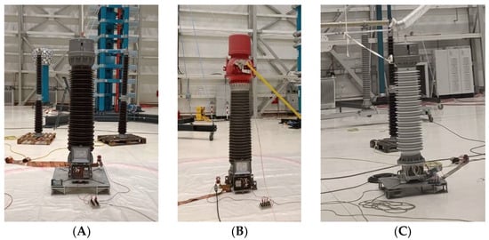 The mechanical impact on the primary winding can be quantified through two main tests. The first is the error measurement. This approach is analogous with the leakage impedance measurement of power transformers []. As mentioned in [], voltage and phase errors of a voltage or combined transformer are dependent on the transformer geometry. If that geometry changes, so does the accuracy. For short-circuit tests, standards [,,] allow an error difference of less than half the accuracy limits of each respective class (e.g., ±0.1% and ±5 min for accuracy class 0.2). It should be noted that during short-circuit tests, which are the closest in terms of mechanical strain to this test, both windings are stressed, whereas during discharge, only the primary winding is stressed. Furthermore, assuming the unit is built for a low accuracy class (e.g., 3P), this would allow for very high errors to be recorded, which is why it is advisable to use the values given above as representative, independently of the rated designated accuracy class.