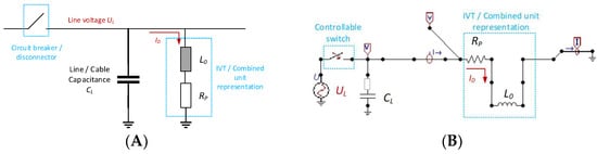 This paper will give a theoretical overview of capacitive discharge and provide the main influencing parameters that need to be considered. The variation in influencing parameters is based on a saturated, linear numerical model that was presented and verified in []. While non-linear numerical models can be used, they add little value for this purpose, as the core of the transformer is heavily saturated, as explained in references [,,]. The basic equivalent diagram of capacitive discharge and the model used (as drawn in ATPDraw software, Windows version 5.5) in this paper are given in Figure 2.