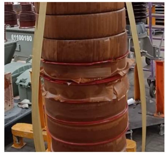 The main reason the two are compared is due to the fact that unit 2 did not satisfy the mechanical test, and suffered winding collapse at first discharge. When we compare the parameters of both units, it is clear that the discharge current is approximately 35% higher for the same CL of 8 µF, which also indicates a higher mechanical stress on the primary winding. On the other hand, it is clear that, due to its construction (larger conductor cross section), the unit is less thermally stressed. In the end, both units are thermally far removed from the limit proposed in Table 4. That being said, it is clear that the mechanical aspect is more perilous. It is worth noting that some mechanical effects were visible in the accuracy class measurements performed on unit 2 after the thermal test. This only proves that this is an adequate acceptance criterion. Furthermore, the extent of damage is shown in Figure 9, and this corresponds to the trends observed during electric measurements.
