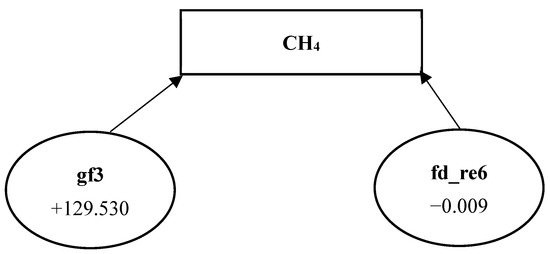 Graphical representation of the functional dependency of methane on green investments and renewable energy development. CH4—Methane (CH4) emissions, kt; gf3—Green economy market capitalization, USD million; fd_re6—The first differences in installed renewable energy-generating capacity in developing countries, watts per capita. Source: Authors’ results.