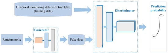 Equation (3) shows that the main principle of the adversarial mechanism is first to fix G to search for the D that can maximize the loss function, and then fix D to search for the G that can minimize the loss function. The above adversarial learning will be terminated once Nash equilibrium between G and D is achieved. Finally, the fake data that have a similar distribution to the real data can be generated by the trained GAN.