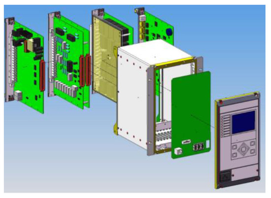 A 35 kV piece of RPE with typical structural characteristics was selected as the research object. It includes common functional plugins and basically covers the main types of components, whose structure and composition are shown in Figure 5.